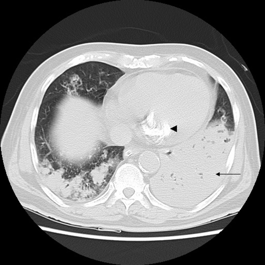 emergency with complaints of cough with scanty expectoration and increase in breathlessness. Initially we suspected it to be a case of pulmonary