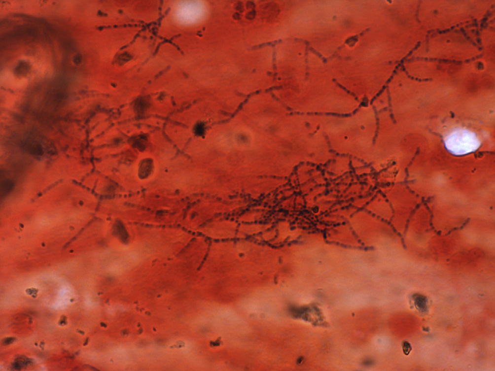 Fig. 6. Gram stain showing Gram positive branching bacilli.